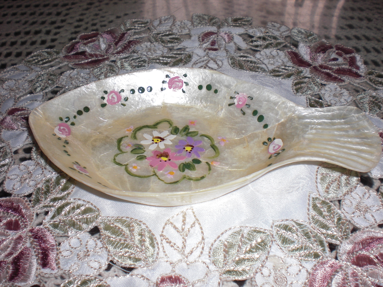 トールペイントは昨年「クリスマスプレート」を作ったのが初めてで、今回は魚の形をしたお皿に、綺麗なお花の絵を描く、というもの!