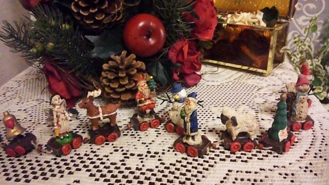 ツリーのほかにも、小さな小さなサンタさん、トナカイさんや、エンジェル、スノーマンや羊さん達が、それぞれにソリに乗り、それが一本の紐でつながってる、超可愛いお人形(かな?!)もゲットしてしまった・・・
